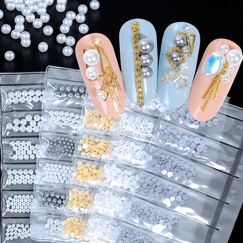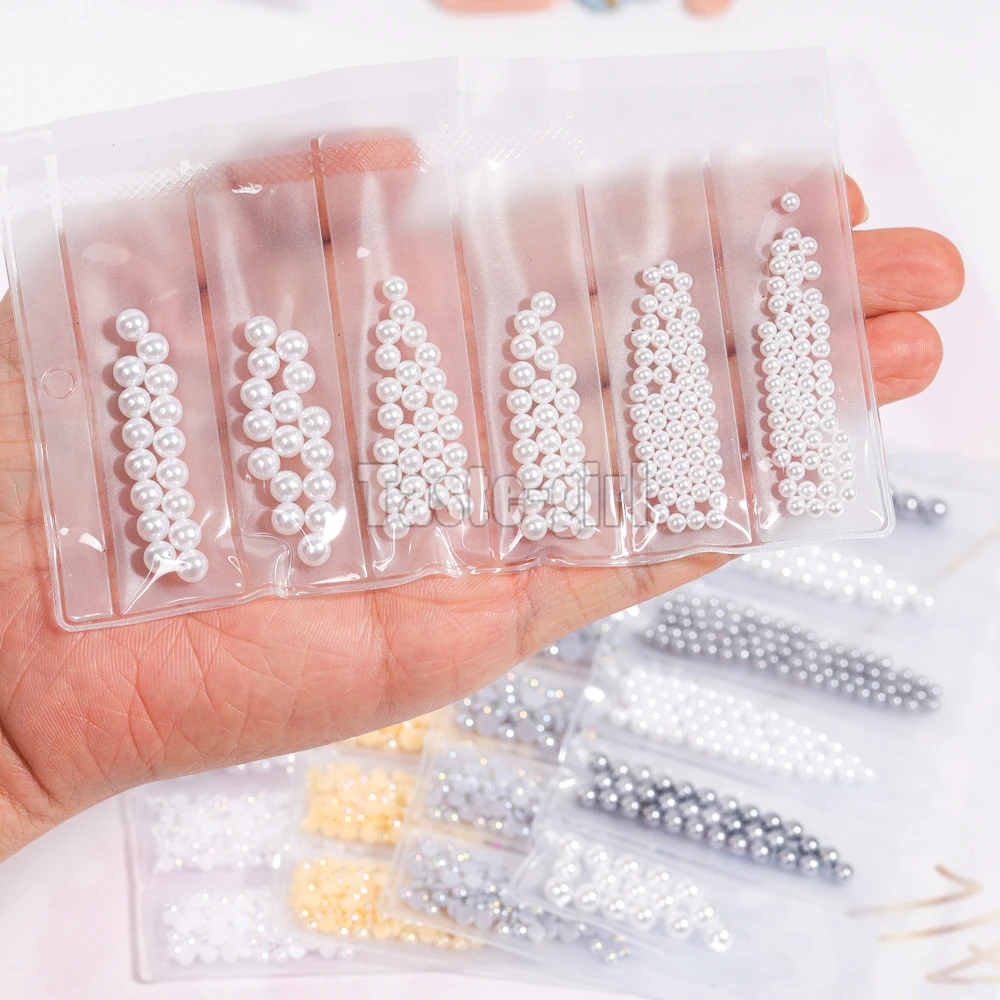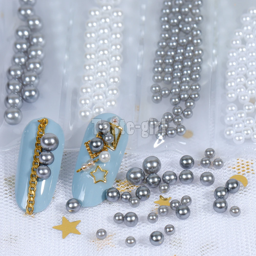 1 Pack 3d Nail Rhinestone Various Size Pearls Charming Nail Art Decoration White Gray AB Circle Beads Studs Manicure Jewelry GZP