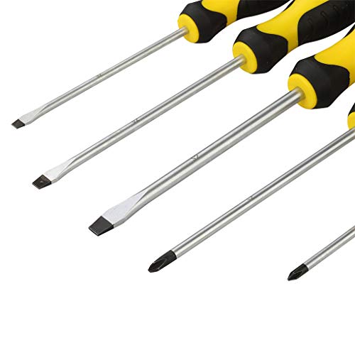 Questo set di 5 cacciaviti piatti e a croce ha un manico dal design ergonomico e una punta magnetica