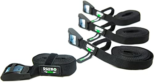 RHINO USA Cinghie di ancoraggio a cricchetto (confezione da 4) - Cinghie di ancoraggio a cricchetto Resistenza massima 500 kg (2.5cm x 3.6m) - Perfette per carichi kayak refrigeratori e altro