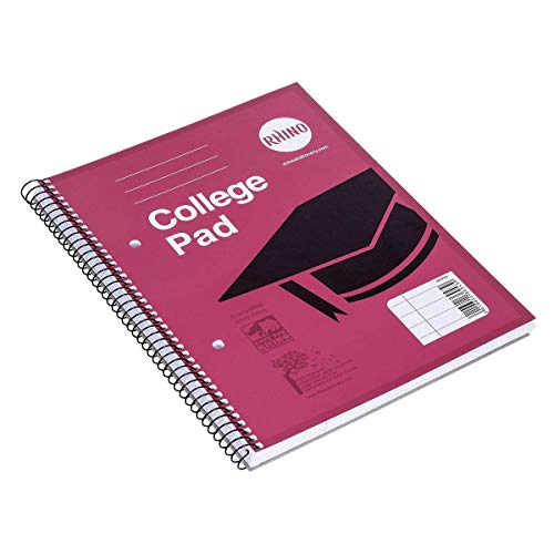 Rhino - Quaderno A5, a righe da 8 mm, con margini e rilegatura a spirale, confezione da 10