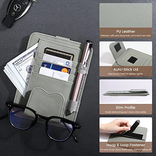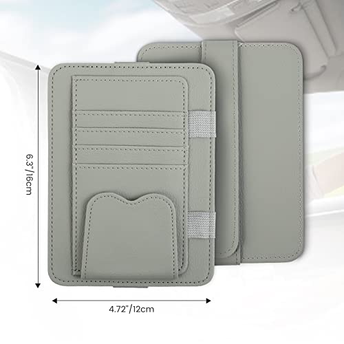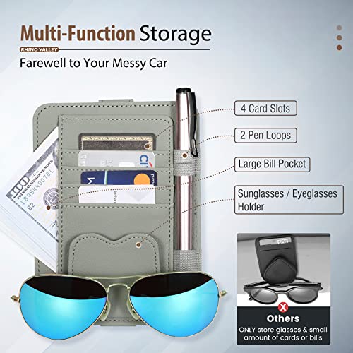 Rhino Valley Organizer per Parasole da Auto in PU, Portaocchiali da Auto Multiuso con Chiusura a Strappo, Tasca Laterale, Anelli per Penna, Taschette per Tesserini, Accessori per Auto, Grigio Scuro