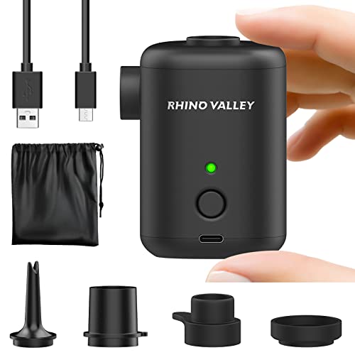 Rhino Valley Pompa ad Aria Elettrica con 4 Ugelli Diversi, Pompa Portatile per Materassi da Campeggio a Riempimento Rapido Pompa di Gonfiaggio Sgonfiaggio per Salvagente Letto Gonfiabile Pscina, Nero