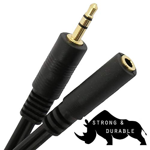 Rhinocables Cavo di prolunga jack per cuffie stereo AUX da 3,5 mm, da maschio a femmina, per computer portatile, smartphone, tablet, cuffie, TV, radio e PS4 1 m Nero