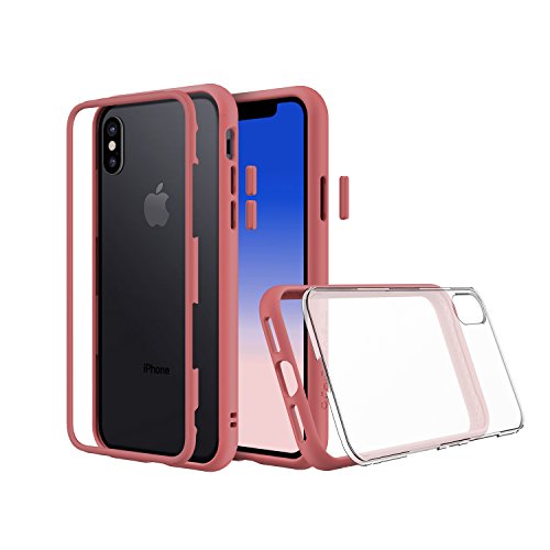 RhinoShield iPhone X Premium Modular Slim Case MOD Shock Absorbent Heavy Duty Protective Cover - Compatible w/Wireless Charging & Lenses - Shockproof Coral Pink Bumper w/Clear Back