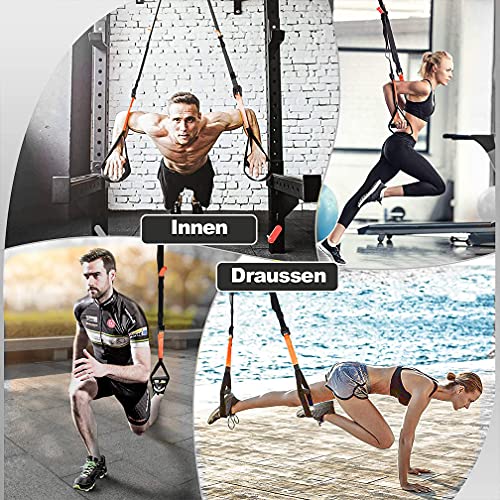 ✅ Facile da installare e facile da usare: la cinghia principale può essere facilmente regolata in lunghezza. Basta premere la leva sulla cerniera (fibbia nella parte centrale) e abbassare o sollevare la sezione con la cinghia regolabile. Questo allenamento di resistenza ha una lunghezza regolabile che consente di aumentare o ridurre le difficoltà di allenamento semplicemente modificando la posizione del corpo.