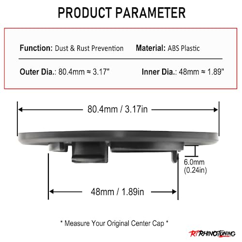 Dimensioni: diametro esterno di 80,4 mm, diametro posteriore di 48 mm, si prega di fare riferimento all'immagine! Si prega di misurare bene le dimensioni dei vostri cerchioni o dei vecchi coprimozzi