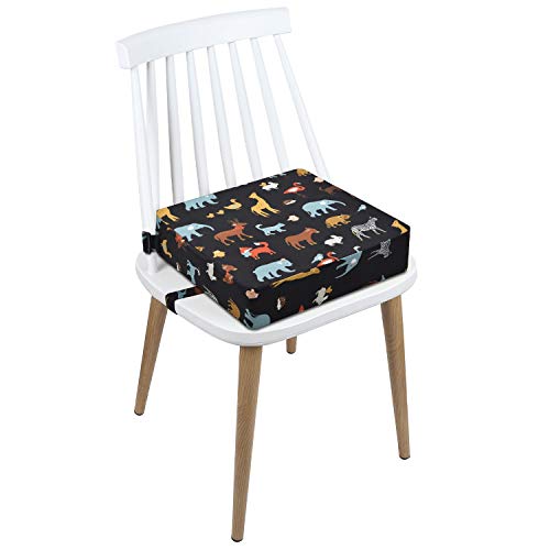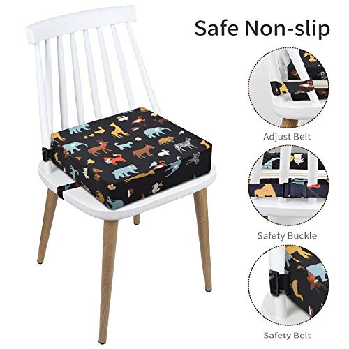 ✌【Aspetto Cartoon】Il seggiolino rialzato adotta un divertente motivo a cartone animato: Animali Colorati su uno sfondo nero, che soddisferà l'interesse dei bambini. Il motivo degli Animali Colorati può stimolare l'interesse dei bambini e renderli curiosi del mondo