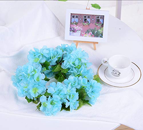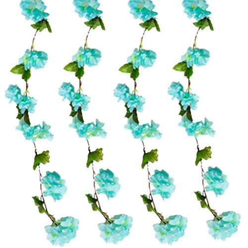 Riaxuebiy 4 pezzi di ortensia artificiale fiori foglie, ghirlanda di luci a forma di fiore di ciliegio da appendere a vite per matrimonio, San Valentino, decorazione per giardino di casa (blu senza LED)
