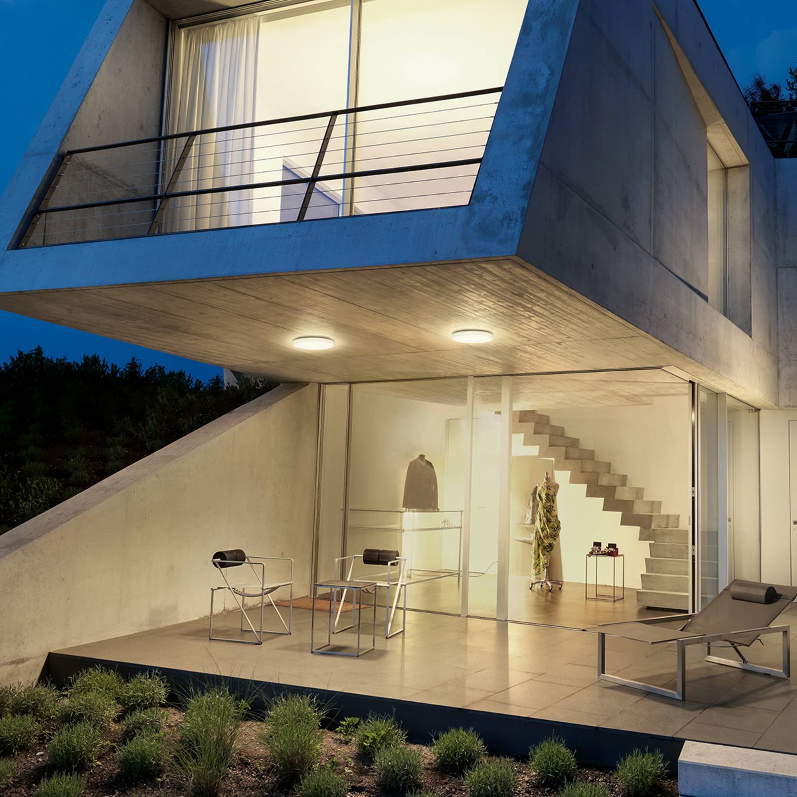 Plafoniera Punto LED con LED dimmerabili, 42 cm ØCon un diametro di 42 cm e una potenza luminosa di 2.950 lumen, la plafoniera Punto LED può essere utilizzata non solo in stanze private, ma anche in uffici, sale studio o altre aree commerciali. La luce dei LED brilla in un piacevole bianco caldo (3.000 Kelvin) e viene emessa in modo uniforme e non abbagliante nell'ambiente circostante dal diffusore in plastica finemente smerigliato. L'alloggiamento dell'apparecchio è in alluminio pressofuso ed è stato colorato in grigio metallizzato (RAL 9006). L'installazione, a soffitto o a parete, è molto semplice grazie al collegamento a innesto brevettato. Una durata molto lunga e una buona resa cromatica di Ra 85, oltre a un'illuminazione estremamente efficiente e a risparmio energetico, caratterizzano ulteriormente l'apparecchio a soffitto a LED.
