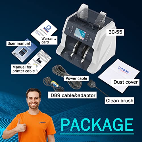 RIBAO BC-55, Contabanconote, Contamonete, Rilevatore di Banconote False 2CIS/UV/MG/IR, Contatore 12 valori di valuta, Lettura del numero di serie, 2 anni di garanzia