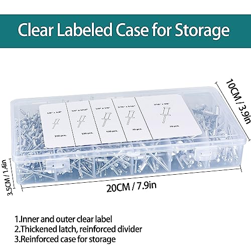 Set di ribattini ciechi, ribattini in alluminio, assortimento 500 Pz Alu/Acciaio, diverse misure di ribattini Pop, ribattini a testa piatta per metalli, legni e plastica, 3,2 mm 4,8 mm