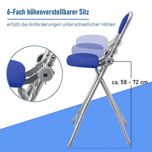 Ribelli Sgabello per Stirare Seduta Sedia da Stiro Regolabile in Altezza Blu