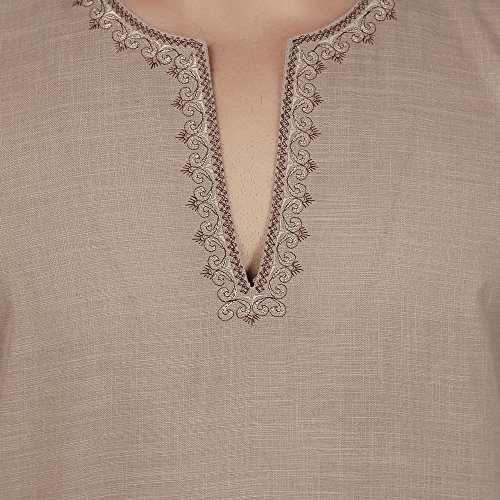 Ricamato Cotone Abito Corto Kurta Mens Camicia Abbigliamento India (Marrone, L)
