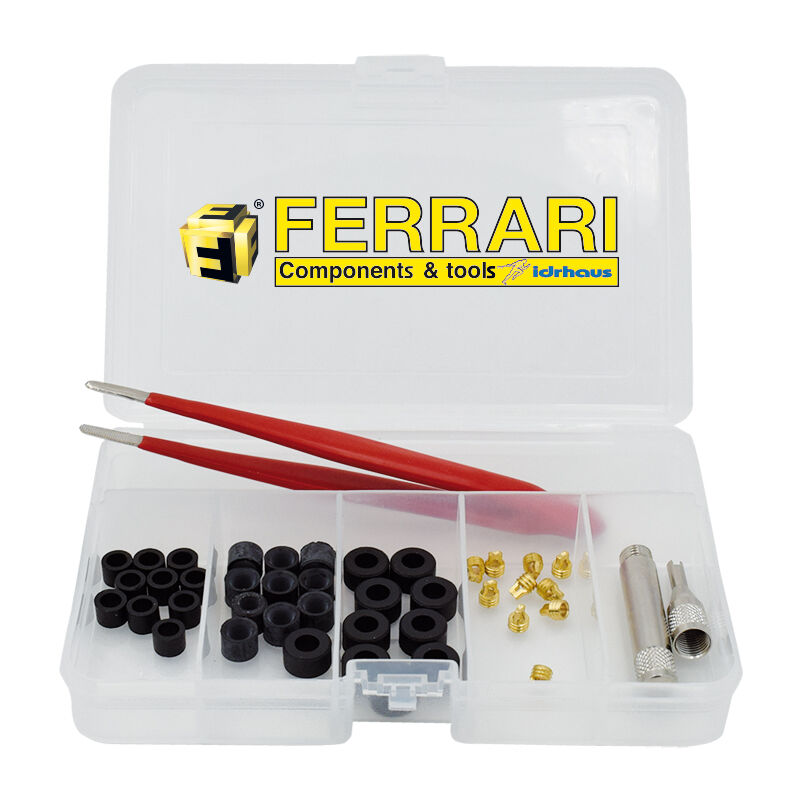 Il kit ricambi per fruste è un set completo progettato per la manutenzione e la riparazione di fruste e attrezzature correlate. Questo kit include una serie di componenti essenziali che consentono di sostituire parti danneggiate o consumate, garantendo un funzionamento ottimale delle fruste. CARATTERISTICHE: 1 pinza per facilitare la manipolazione e l'installazione dei componenti 1 cacciavite toglivalvole, codice 17.496, per rimuovere le valvole in modo efficiente 10 guarnizioni da 1/4 codice 17.501/2, 10 guarnizioni da 5/16 codice 17.501/1 e 10 guarnizioni da 3/8 codice 17.501/3 per garantire una tenuta sicura e affidabile 10 depressori da 5/16 codice 17.502/1 per facilitare la manutenzione delle fruste Questo kit viene fornito in una valigetta resistente che consente di conservare in modo ordinato e trasportare facilmente tutti i componenti. È ideale per tecnici e professionisti del settore HVAC/R che necessitano di un insieme completo di ricambi per fruste per affrontare una