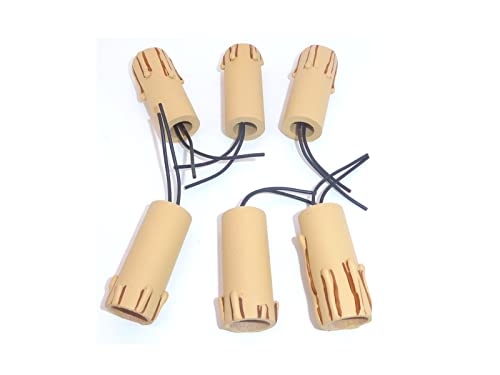 Kit ricambi 6 portalampade in legno finta candela antichizzata E14 Finta Candela In Legno H 60mm + assi filettati