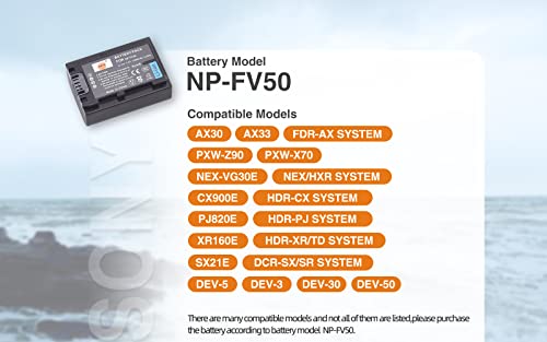 DSTE Ricambio Compatibile per Batteria Sony NP-FV50 HDR-CX220 HDR-CX230 HDR-CX290 HDR-CX330 HDR-CX380 HDR-PJ340 HDR-PJ380 Fotocamera