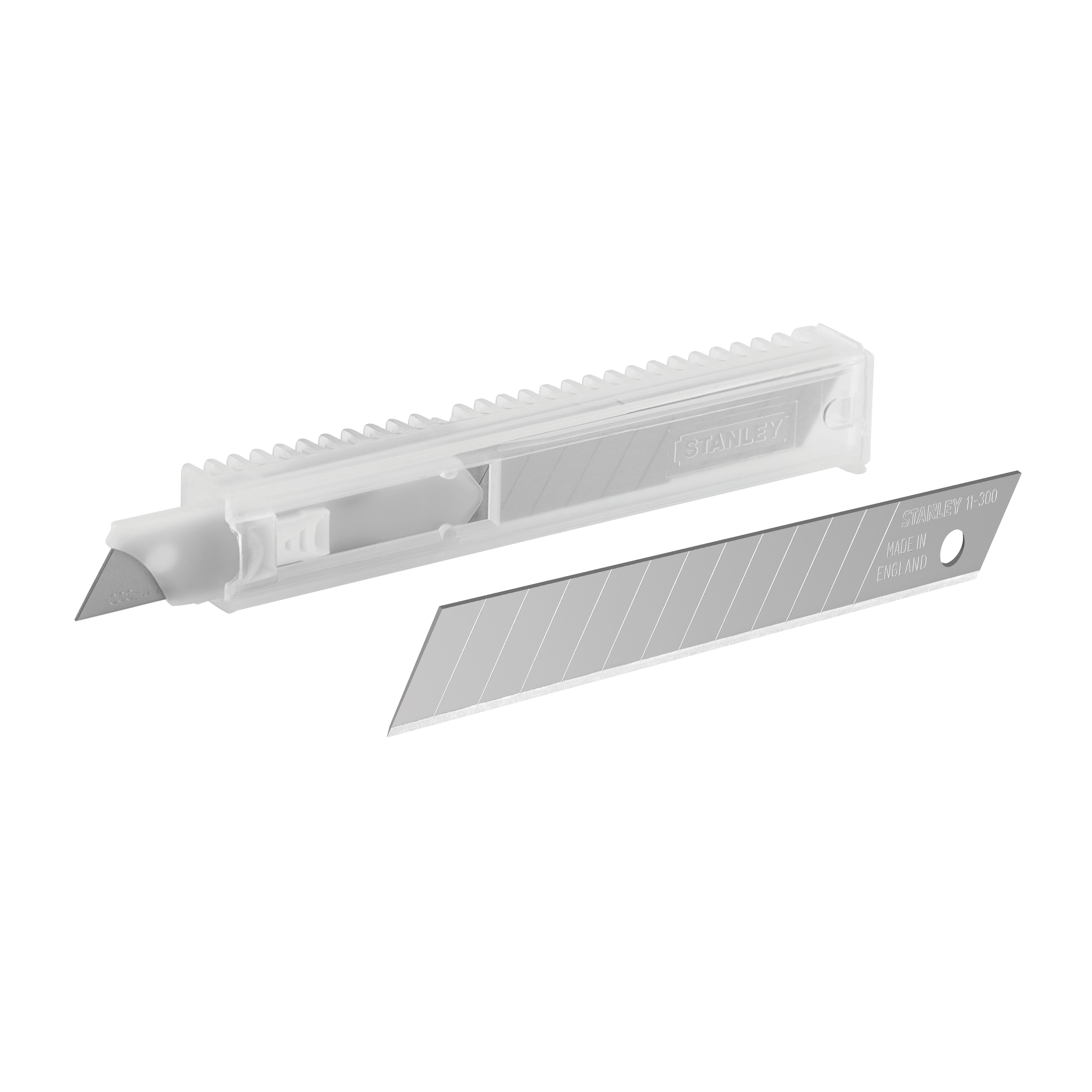 Confezione 100 lame a spezzare da 9 mm standard, in dispenser, lunghezza mm 85, larghezza 9 mm, Spessore 0,43 mm. 12 elementi a spezzare