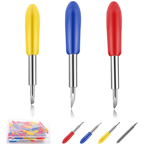 Confezione super preziosa: riceverai una scatola di 60 lame di ricambio per cricut, tra cui 15 lame a punta fine a 30° (giallo), 30 lame a punta standard a 45° (rosso), 15 lame a punta profonda a 60° (blu).
