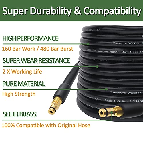 Tubo di ricambio per idropulitrice 10 m x 160 bar, Tubo di prolunga per pulizia dell'acqua ad alta pressione con connettore di prolunga per la maggior parte delle idropulitrici Karcher K2~K7