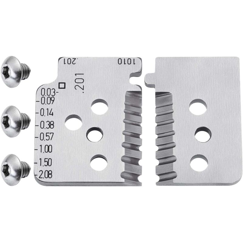 12 19 02 1 set di lame di ricambio per 12 12 02 Spelatura ad accoppiamento geometrico anche di materiali isolanti di difficile rimozione in PTFE, silicone, Radox®, Kapton® e gomma anche a più strati. Una seconda coppia di lame mantiene fermo l'isolante residuo. Lame sagomate intercambiabili specificamente adattate alla sezione del cavo. Con staffa di arresto per garantire lunghezze uniformi nei lavori in serie. Kapton® è un marchio registrato di E. I. du Pont de Nemours and Company. Radox® è un marchio registrato di Huber & Suhner AG. spelatura ad accoppiamento geometrico anche di materiali isolanti di difficile rimozione in PTFE, silicone, Radox®, Kapton® e gomma anche a più strati una seconda coppia di lame mantiene fermo l'isolante residuo lame sagomate intercambiabili specificamente adattate alla sezione del cavo con staffa di arresto per garantire lunghezze uniformi nei lavori in serie RoHS n Peso del tessuto 58 Dimensioni dell'imballaggio 1