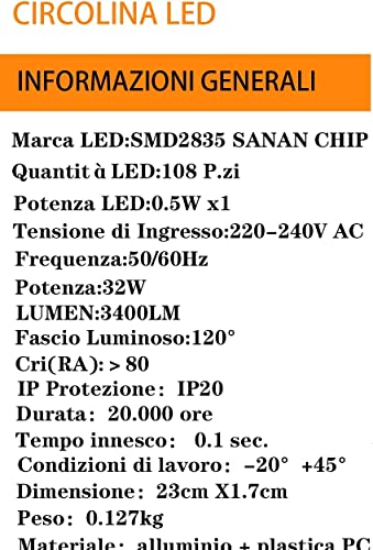 Ricambio LED Universale per Plafoniere - Circolina con Magnete - 32W - Luce Naturale 4000K - 108 LED - 220 volts - Diametro 23 cm