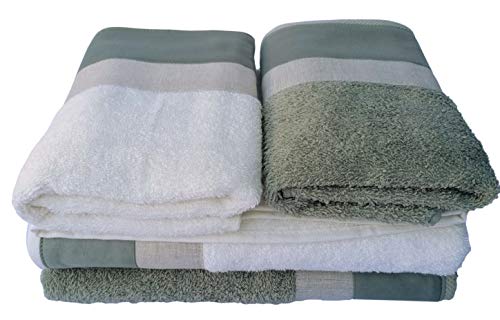 RICAMI FIORENTINI BALDI Set Asciugamani con Balza Lino e Raso, Spugna di Cotone 100%, 4 Pezzi: 2 Viso + 2 ospite. Idea Regalo. Prodotto Artigianale Toscano (4 Pezzi, Siena-Duo, Verde)