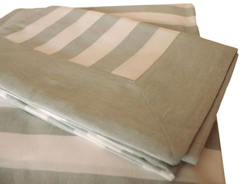 RICAMI FIORENTINI BALDI Completo Lenzuola in Tessuto Rigato Tinto in Filo 100% Coton. Lenzuolo sopra + sotto con Angoli + Due federe. Prodotto Artigianale. Matrimoniale Standard, Verde