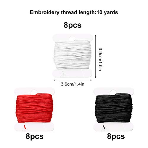 ☛La confezione include: 8 fili da ricamo rossi, 8 fili da ricamo bianchi e 8 fili da ricamo neri. I filo da ricamo sono perfetti per cucire e ricamare quotidianamente.