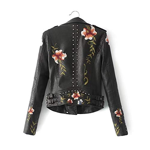 Ricamo Ecopelle PU Giacca Donna Primavera Autunno Moda Moto Giacca Nero Ecopelle Cappotti Capispalla Cappotto, Nero, S