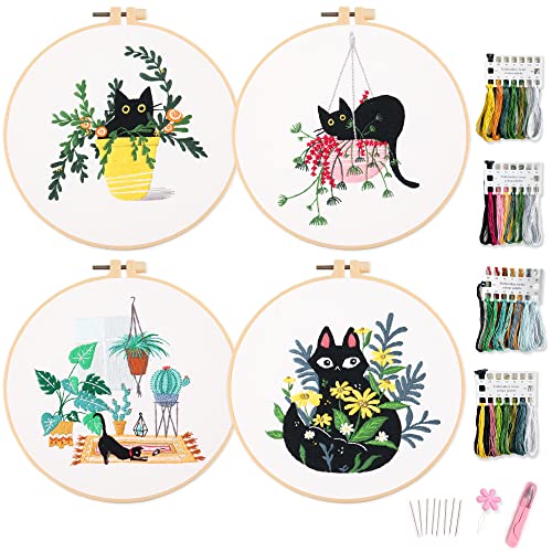 Contenuto della confezione: 4 set di ricami, tra cui 2 cerchi da ricamo (19,8 cm), 4 cotone da ricamo da 30 x 30 cm (con motivo), 8 aghi, 4 istruzioni per l'uso, 1 forbici, 1 infila e 4 fili da ricamo sufficienti.