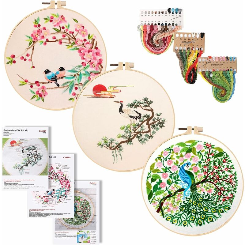 Il principiante più completo - Starter Kit per ricamo, il set per ricamo è dotato di tutti gli strumenti necessari per il ricamo. Contenuto della confezione: 1 telaio da ricamo 20 cm, 3 pezzi di cotone classico riserva 30 x 30 cm (con motivo su di esso), fili colorati, aghi da ricamo, 3 manuali. 【Kit di ricamo per principianti】 Kit di fili da ricamo 3 pezzi, Strumento di ricamo per principianti, il nostro kit di ricamo fai-da-te per adulti include tutto ciò di cui hai bisogno. Le istruzioni sono facili da seguire e mostrano abbastanza bene come eseguire i diversi punti tra cui: punto foglia, punto diritto, punto indietro e nodo francese. I telai per ricamo hanno una vite di fermo per tenere il tessuto da ricamo in posizione. 【Telaio da ricamo regolabile】 Il telaio da ricamo ha una vite di regolazione che puoi stringere se necessario per tenere il tessuto stretto come un tamburo.< /p> 【Decorazione squisita】Gamma completa di kit di base con tutti gli strumenti necessari per il ricamo.