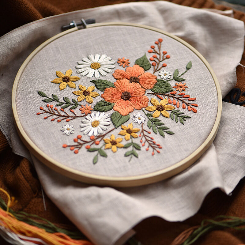 Impara 7 metodi di ricamo, nodo francese, punto pieno, punto lungo e corto, punto indietro, punto seme, punto margherita pigro, punto contorno o gambo. Ottimo regalo per te, la famiglia o un amico. Incantevole kit da ricamo con fiori autunnali: Il filato beige, giallo, verde, arancione, arancione scuro, marrone produce fiori di margherita, rosa, semi di rosa, foglie e stelo. Dopo aver terminato il ricamo, puoi tagliare il bordo del tessuto, decorarlo con una cornice per foto, o appenderlo al muro con