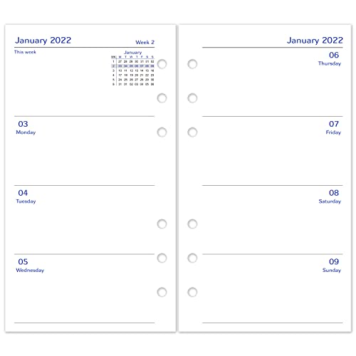 Ricarica agenda personale 2021 settimane, divisa in due pagine, dimensioni 95 x 171 mm, agenda 2021 a partire da lunedì.