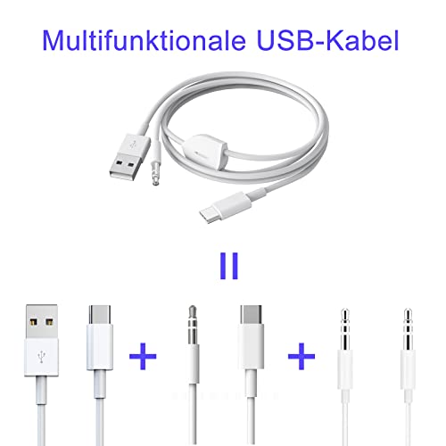 Lunghezza perfetta: 1,2 m sono sufficienti per l'uso quotidiano. Lunghezza del ramo di 1,3 piedi (totale 2,6 piedi da 3,5 mm femmina a USBa), materiale TPE bianco resistente per evitare che si aggrovigli.
