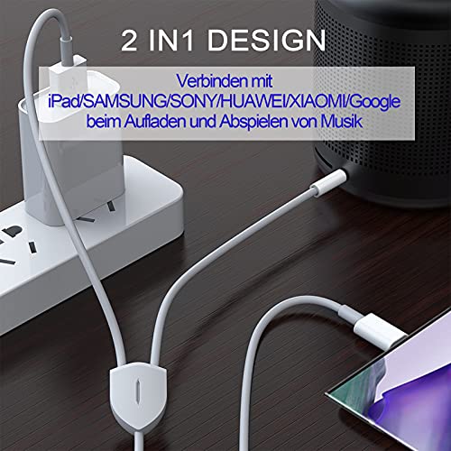 Cavo Aux USB C per auto, 2 in 1, cavo di ricarica AUX per auto, altoparlante audio stereo per auto, Android su jack per cuffie da 3,5 mm, compatibile con Samsung/Xiaomi/Oppo/Huawei/Oneplus/Google