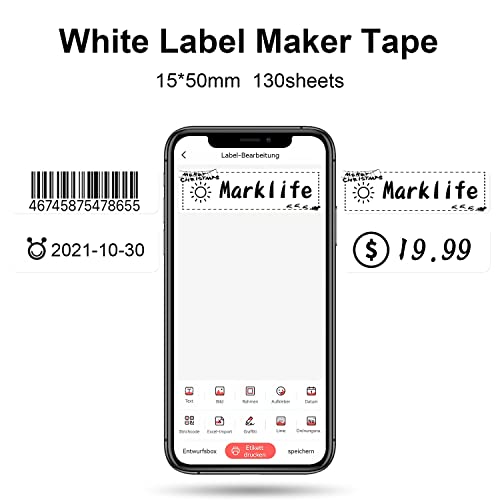 Ricarica bianca per etichettatrice P11 MARKLIFE Thermal Printer Paper Roll - Piccola carta da stampa, carta termica autoadesiva per la stampa di dispositivi di etichettatura Bluetooth, 3 rotoli