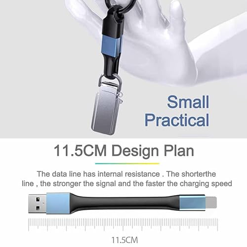Cavo di ricarica corto [11,5 cm] [Mini portachiavi portatile corto] Cavo di ricarica USB USB-C Tipo C Cavo di ricarica USB 3A Uscita dati USB per Samsung Galaxy S22 S21 S20 Ultra S10 S9 S8 Plus (blu)