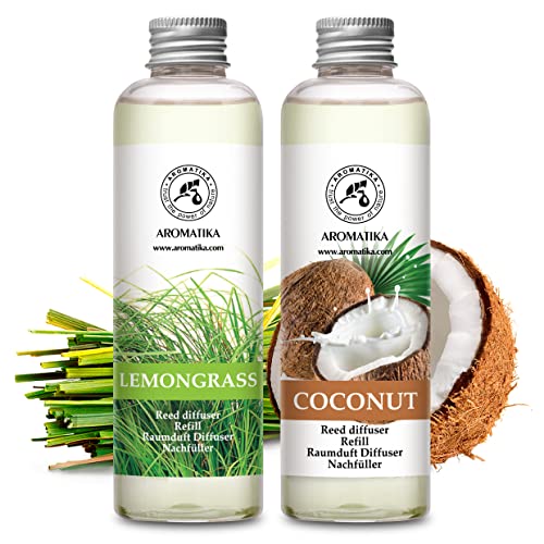 Ricarica Diffusore per Ambiente Citronella - Ricarica Diffusore Cocco 2x200ml - Fragranza Intensa Lemongrass - Deodorante per Ambienti - Profumo per Ambiente - Aromaterapia - Profumi esotici