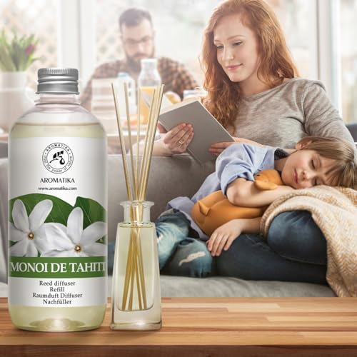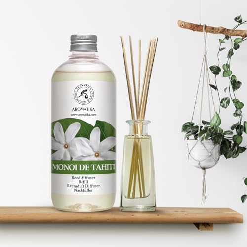 Ricarica Diffusore Bastoncini Monoi de Tahiti 500ml - Diffusore di Aromi - Bastoncini Profumati - Profumo Ambiente - Fragranza Fiori di Gardenia - Deodorante per Ambienti - Diffusore Ambiente
