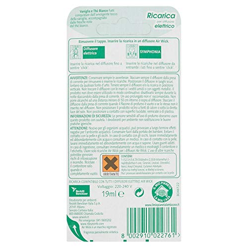 Air Wick Ricarica per Diffusore Elettrico, Vaniglia e Thè Bianco, 19 ml