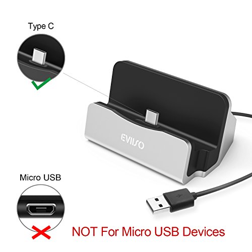 USB TYPE C di Ricarica Docking Station,EVIISO Desktop Caricabatteria da Tavolo Dock Stand Support Sync Charger Docking Station Caricatore Charger Dock Holder per Samsung Galaxy S8 / S8 Plus, Sony Xperia X Compact, Nexus 5X/6P, HTC 10, LG G5 / G6, Huawei P9 / P10, Moto Z /Oneplus 3T/3 (Argento)