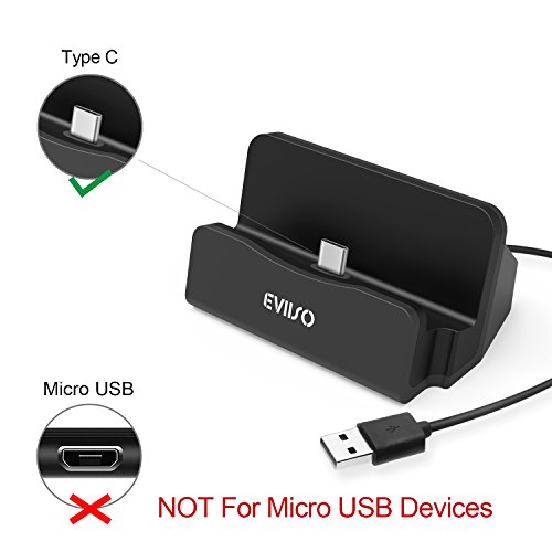 USB TYPE C di Ricarica Docking Station,EVIISO Desktop Caricabatteria da Tavolo Dock Stand Support Sync Charger Docking Station Caricatore Charger Dock Holder per Samsung Galaxy S8 / S8 Plus, Sony Xperia X Compact, Nexus 5X/6P, HTC 10, LG G5 / G6, Huawei P9 / P10, Moto Z /Oneplus 3T/3 (Nero)