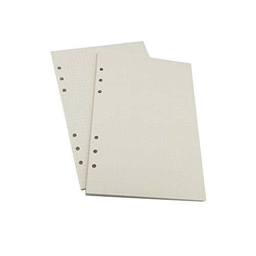 Set ricarica fogli per raccoglitori, formato A5, Chris Wang, 80 fogli, quadrettati/quadrati/a righe/bianchi misti (21 x 14,2 cm). A5 Square Grid & Dot Grid