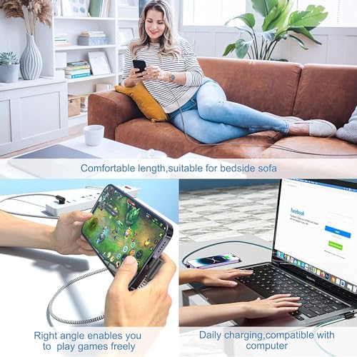 Design a gomito a 90 gradi: con un design ergonomico unico, questo connettore ad angolo retto a 90 ° USB al cavo Lightning non solo impedisce la piegatura e i danni al cavo, ma lo rende anche più comodo per giochi e video mentre il dispositivo è in carica.