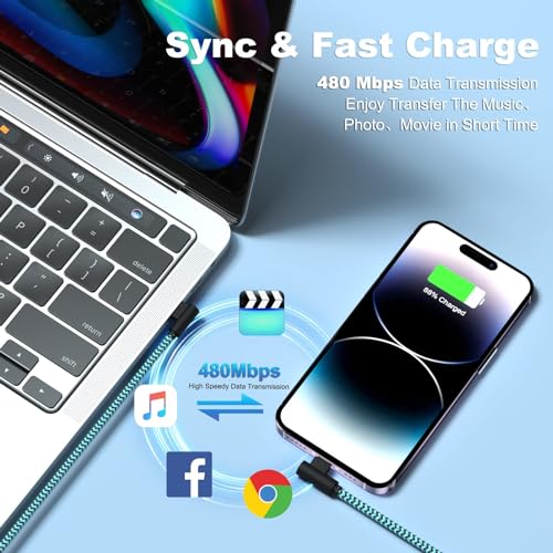 Cavo caricabatterie per iPhone extra lungo da 2,8 m: il cavo di ricarica per iPhone lungo 2,8 m è la lunghezza ideale per la ricarica quotidiana e la trasmissione dei dati, e il pacchetto è disponibile in 3 diversi colori cavi (nero rosa, nero blu, nero bianco) per caricare più dispositivi contemporaneamente e condividere con amici