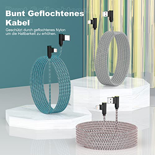 Cavo di ricarica iPhone, [certificato Apple MFi] cavo Lightning a 90 gradi in nylon intrecciato iPhone, cavo di ricarica rapida iPhone per iPhone 14 13 12 11 Pro Max XR XS X 8 7 6s 6 iPad iPod AirPods