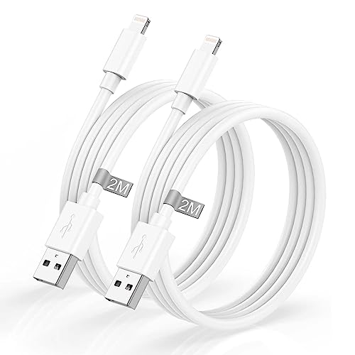 Cavo iPhone USB Extra Lungo: Viene fornito con 2 pezzi cavo USB iPhone, consente di eliminare la lunghezza originale di un metro di restrizione del cavo, anche se si carica sul sedile posteriore dell'auto, è possibile spostare liberamente il telefono. Con un filo caricatore iPhone 2M, non devi preoccuparti della lunga distanza tra il caricatore a muro e il tuo telefono cellulare.