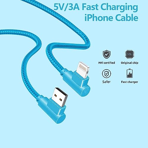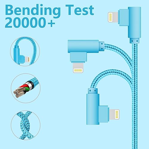 Cavo di ricarica per iPhone, cavo Lightning da 3 m, certificato Apple MFi, ad angolo retto, cavo intrecciato per ricarica rapida, compatibile con iPhone 14, 13, 12, 11, X, 8, 7, 6, iPad, iPod, AirPods