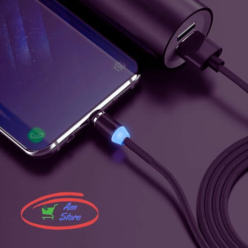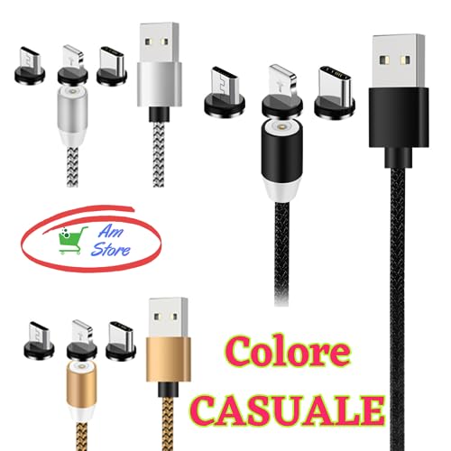 Cavo Ricarica Magnetico 3 in 1 Smartphone Cellulare Tablet Tripla Presa Universale Micro USB Tipo C Iphone Android Samsung Lunghezza 1 Mt. Rotazione 360° Caricatore Telefono con Luce LED