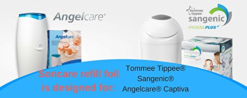 Ricarica mangiapannolini compatibile con Sangenic Angelcare Twist & Click Tommee Tippee - 32 ricariche La Foglia + rotolo cartone per una ricarica ancora più facile e da usare come contenitore per la pellicola